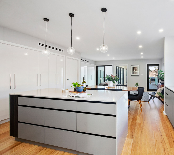 Designed with the ability to be one large family home or two independent dwellings, the Alliance Display Home uses a set of pre-designed living/bedroom bundles to create efficiency in design process and construction.
