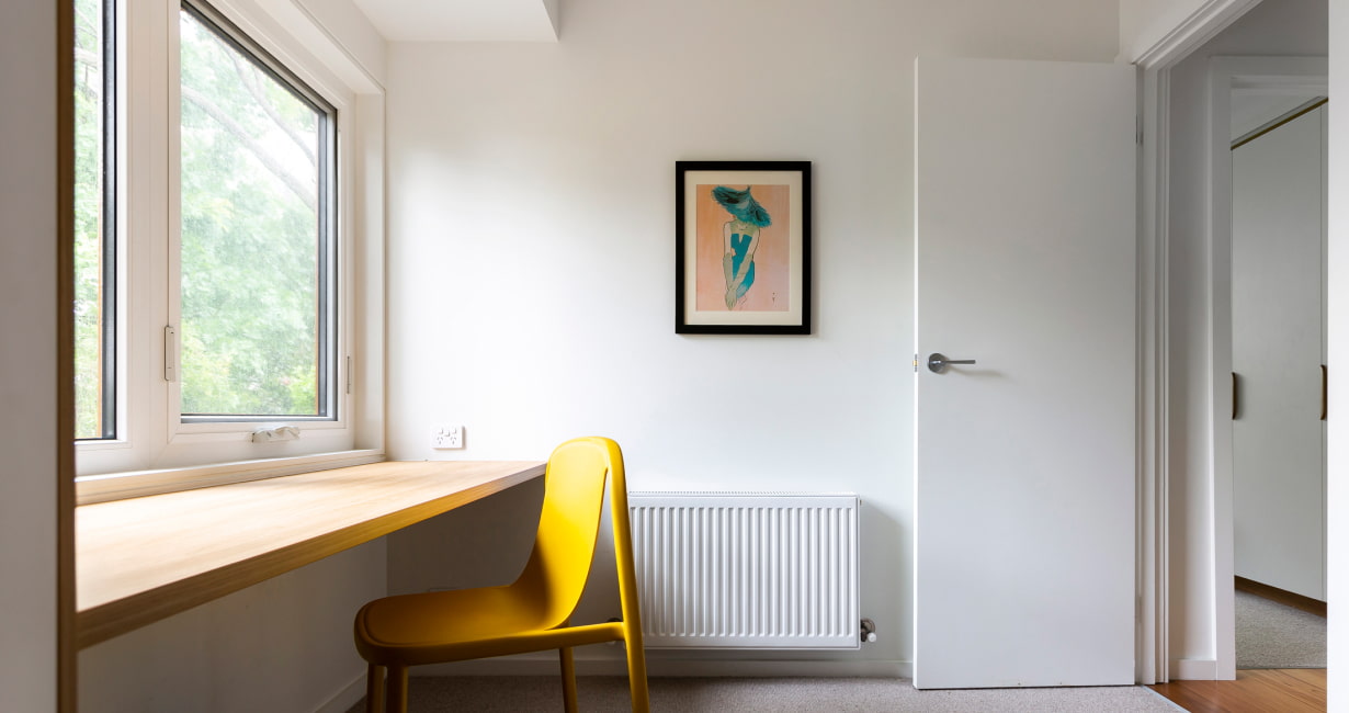 The Bayleaf House, design by Rob Henry Architects, is a smart extension that accommodates additional bedrooms and living areas to an existing Curtin cottage. A new entry links old and new together and separates public and private spaces. The addition steps down into the garden space, connecting indoor and living areas.