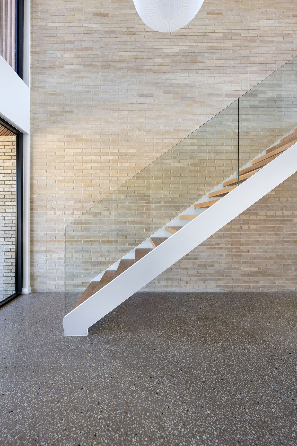 The front entry opens into a bright, open-plan living space with plenty of glass that is brought together through careful attention to detail of the finishes.