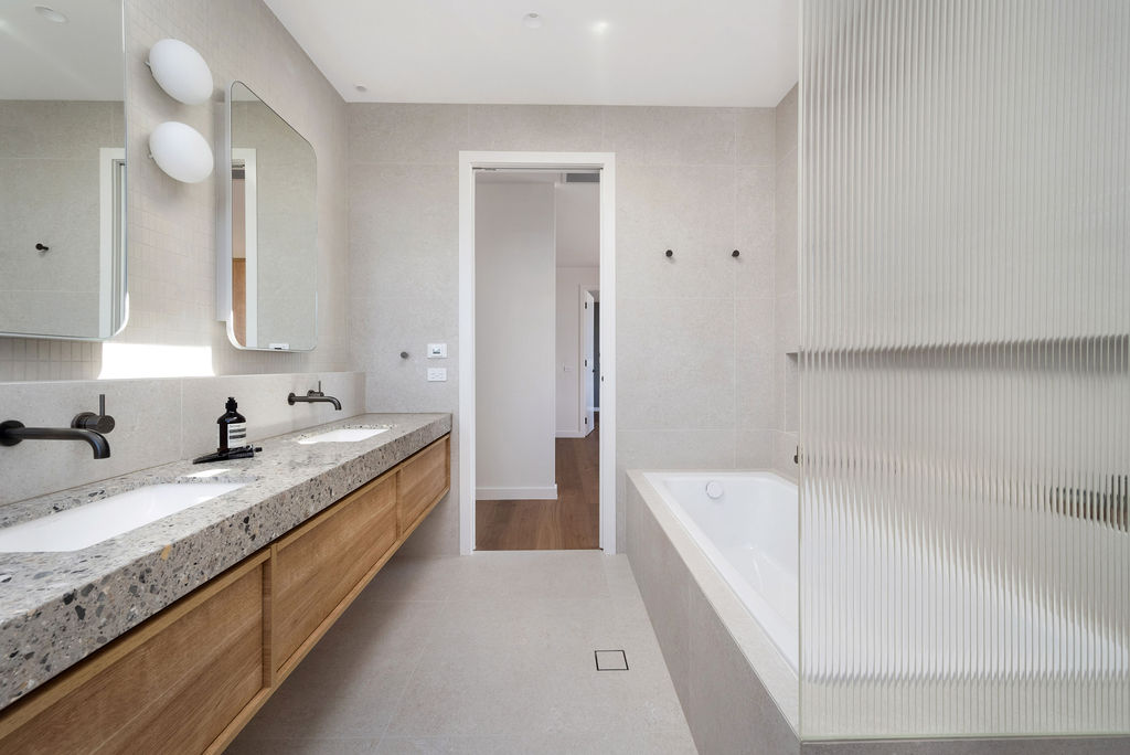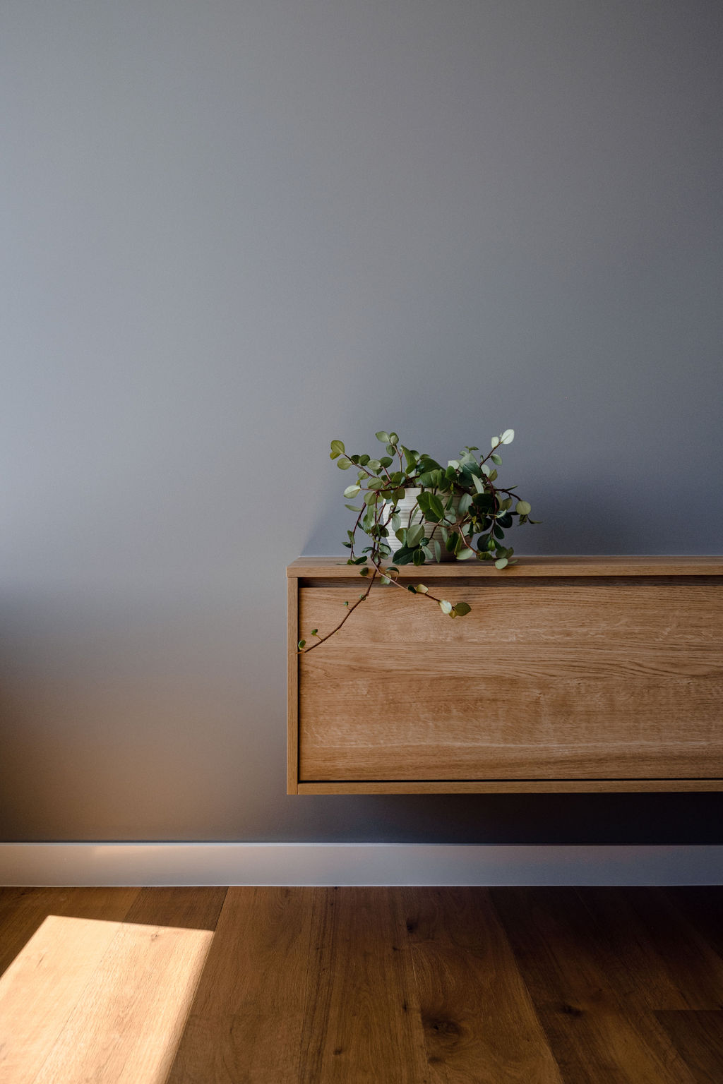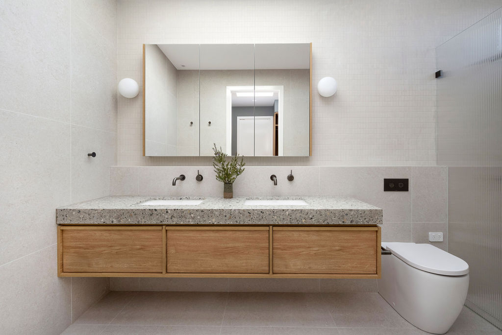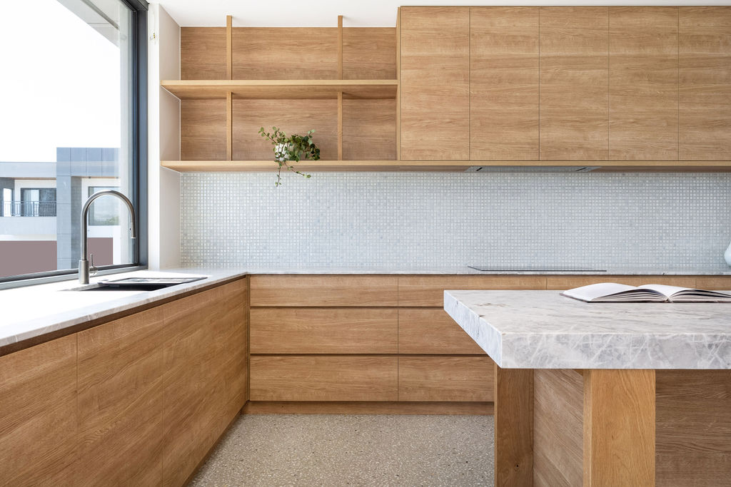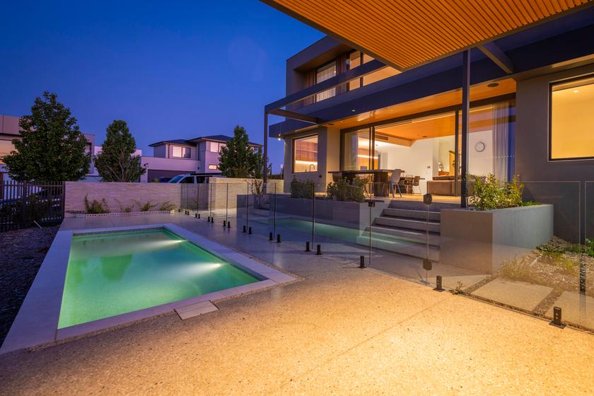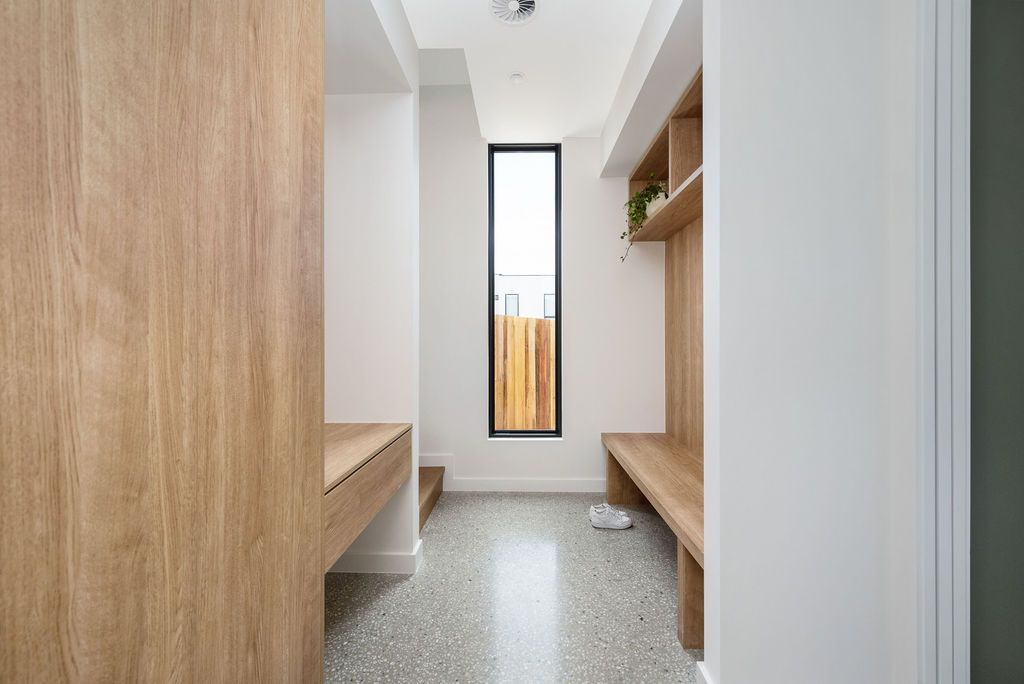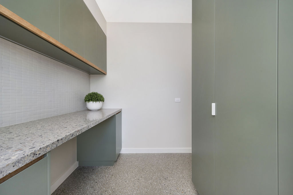 The timber finish meets the edges of concrete and earthy green for an incredible result. This is a home for a couple to grow into for years to come.