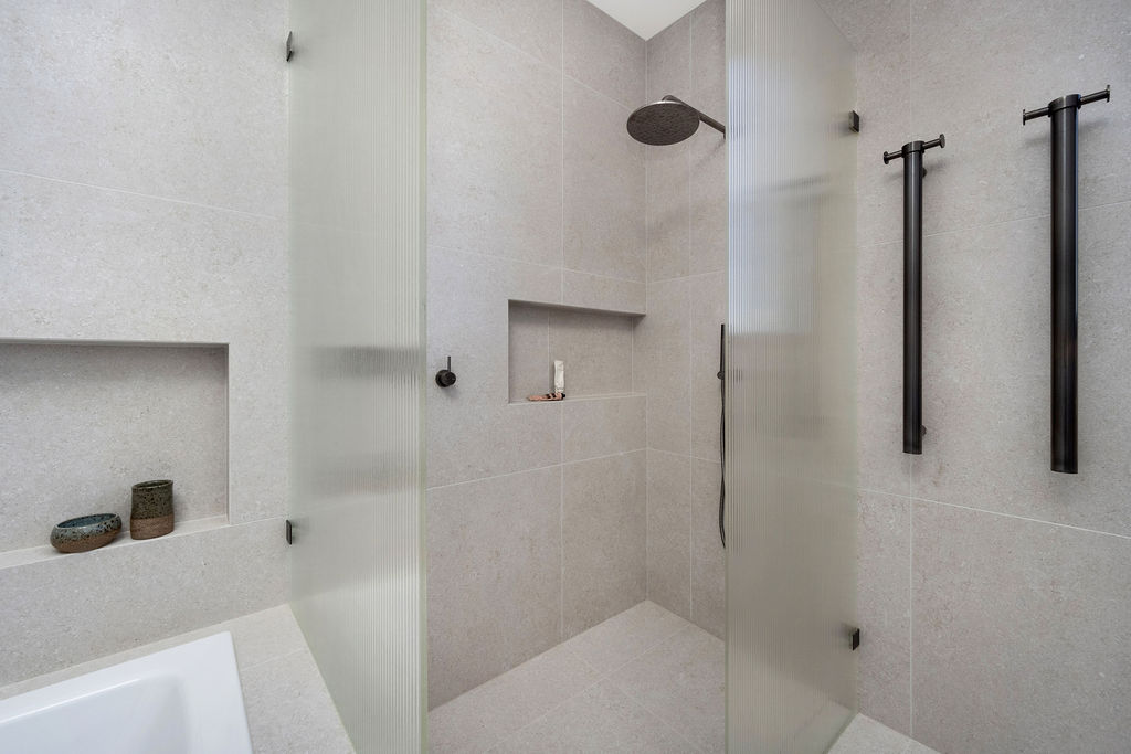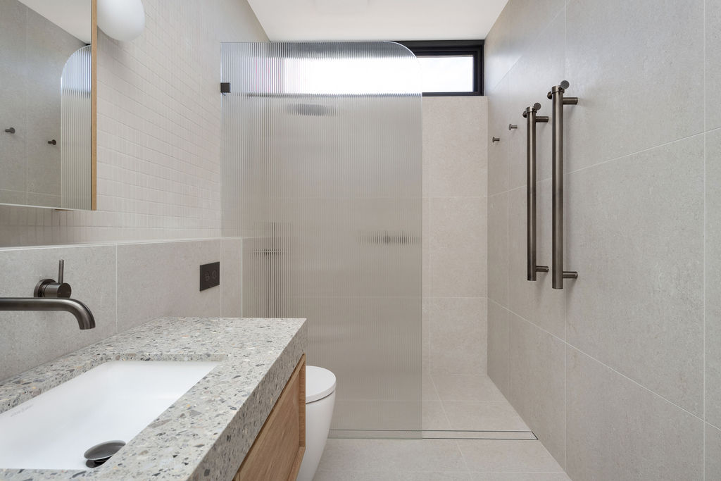 The front entry opens into a bright, open-plan living space with plenty of glass that is brought together through careful attention to detail of the finishes.
