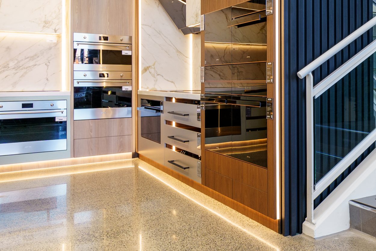 Proud to deliver the full fitout of the e&s Showroom in Fyshwick. From demolition of the existing space to installation of over forty premium kitchen and bathroom display units, we created a cutting edge retail environment tailored to the client’s vision. Our extensive electrical upgrades, modern communication rooms, and sleek partition installations set a new standard in showroom design. Through meticulous project management and phased delivery, the demonstration kitchen opened early while ensuring timely completion of all works. This project highlights Alliance’s commitment to quality, innovation, and seamless collaboration across trades to meet complex commercial fitout demands.