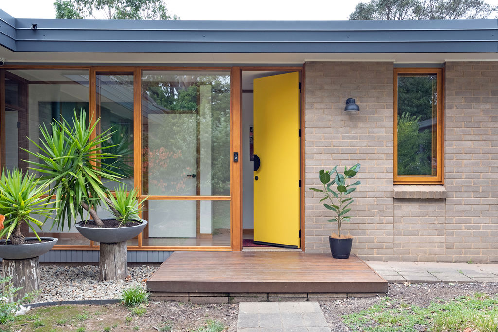 Externally, the materials are limited to the original subtle grey face brick, new custom made timber windows, and the new folded metal fascia and gutter.