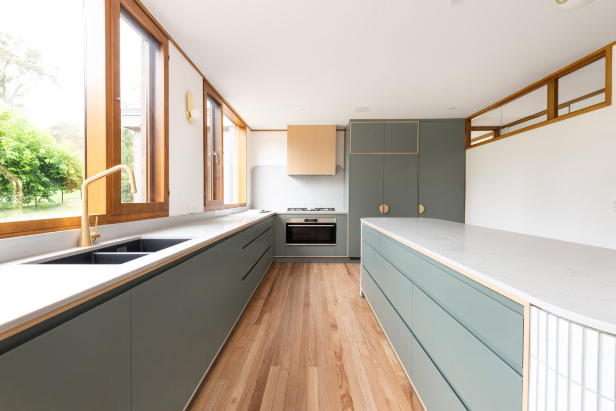 New custom joinery to kitchen, bar and bedrooms allowed for the introduction of some new life and fun to the design. Whilst keeping the mid century soul of the home front of mind.